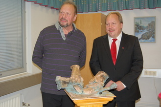 Taiteilija Erkki Liukkonen luovuttaa pronssiveistoksen 16.10.-12